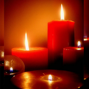 A group of candles whose fire is real and beautiful. Four independent flames each with its own motion.