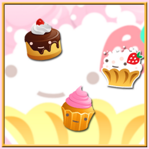 Mmm, delicious! Yummy chibi snacks dance in front of a mesmerizing cascade of giant pastries and rainbow sparkles. Cakes, pies, cupcakes, too good to eat! What's your favorite treat?