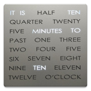 A word clock is a clock that tells the time using words.This clock is really special because it displays words instead of numbers.